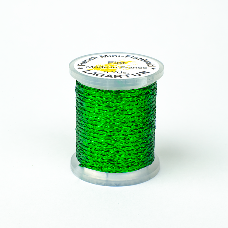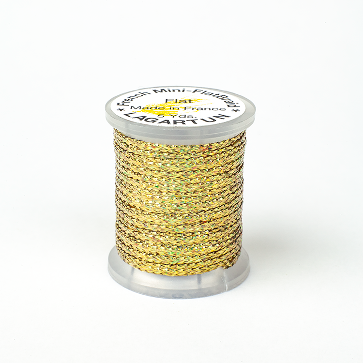Spooled Lagartun French Mini Flatbraid is a versatile material that will allow you to craft superior salmon, steelhead, and trout flies. Flat Mini Braid is narrower than the Lagartun Carded Flat Braid at about 1/16" in width. Mini Flatbraid may be wound on as body or rib with very little added bulk.